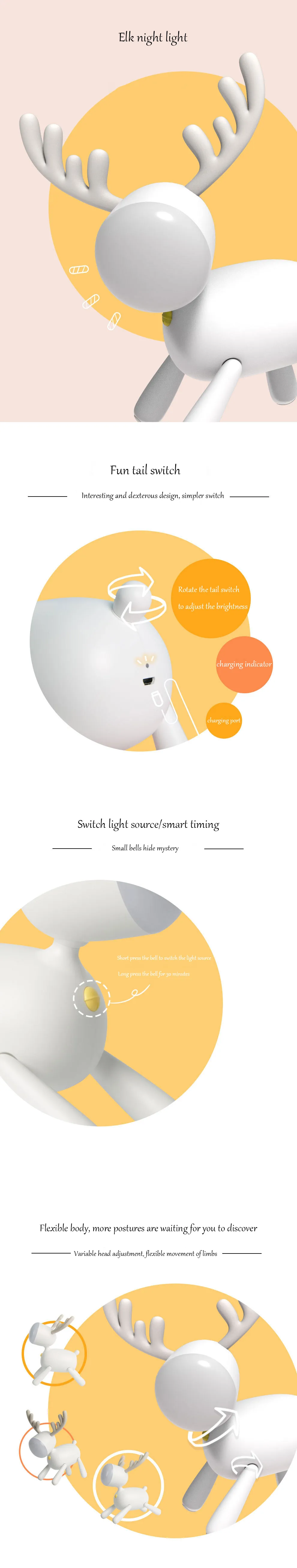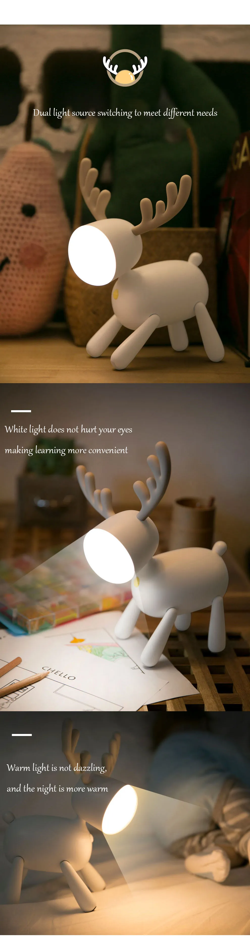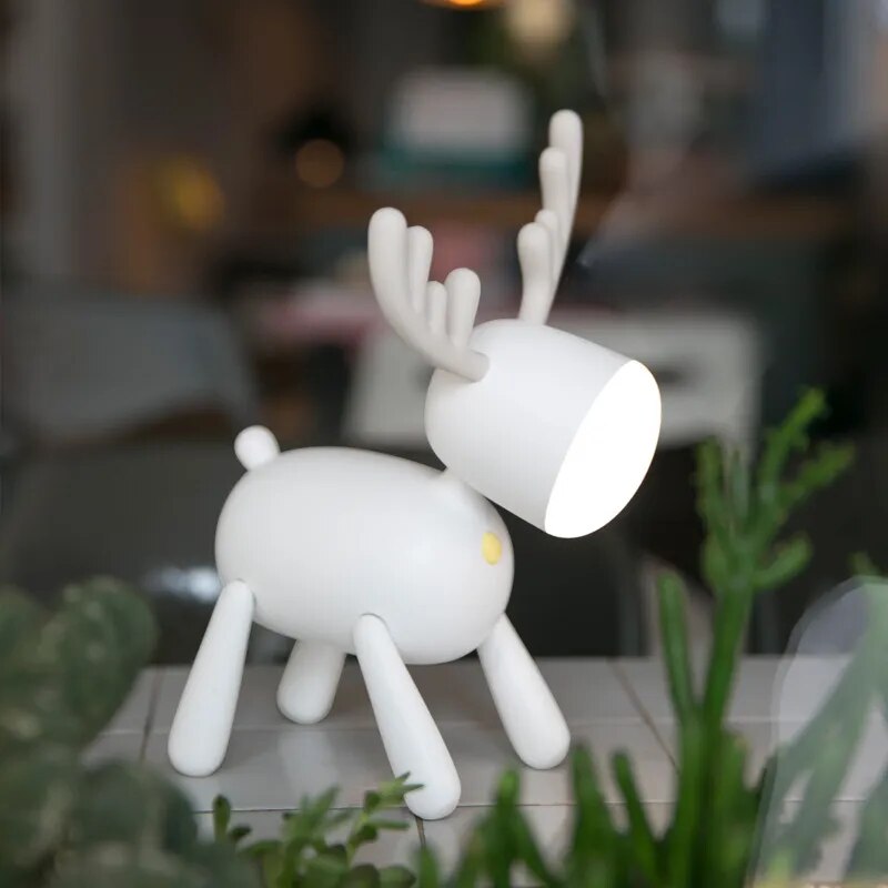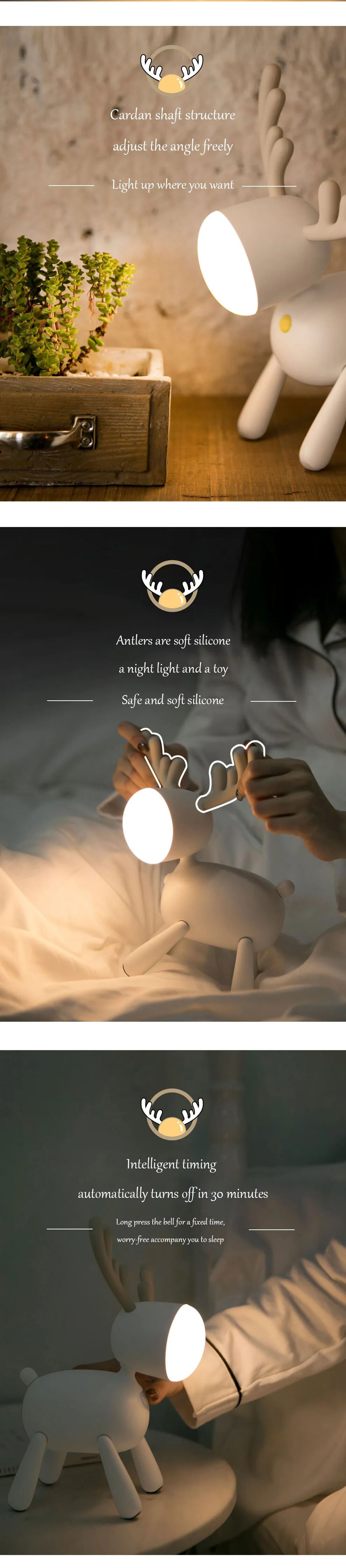 Cartoon Deer Night Light USB Charging With Sleeping Silicone Led Elk Light Children's Student Desk Reading Lamp