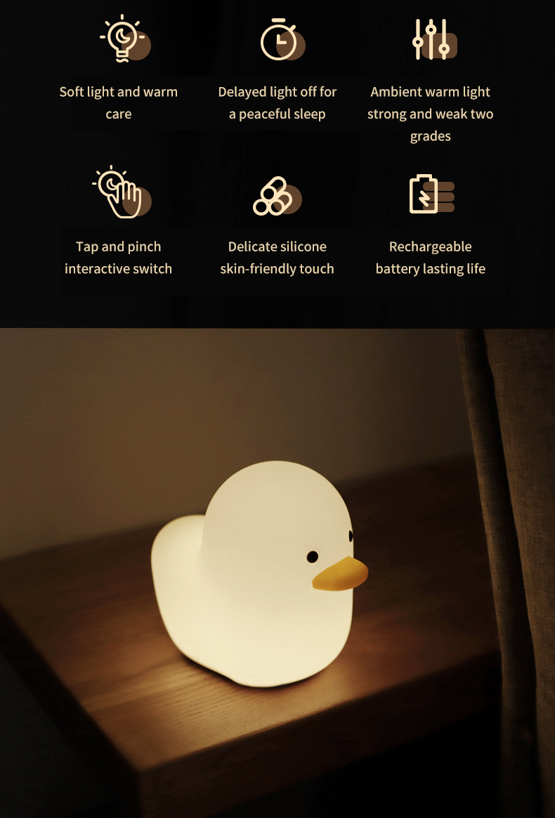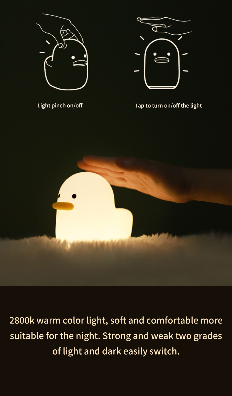 Cartoon Stupid Duck Silicone Lamp USB Charging Bedroom Nightlight Children's Touch Pat Light Eye Protection Atmosphere Light